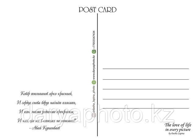 Поздравительная открытка "Наурыз Құтты Болсын". На обороте открытки стихотворение Абая Кунанбаева и место для вашего текста. Размер открытки 10.5-14.8см. Вы можете добавить свой логотип или текст в макет открытки